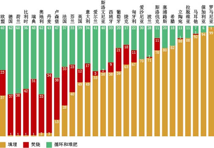 2011年歐盟27國城市垃圾處理方法比較 來源:歐洲統(tǒng)計局