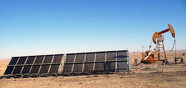 隨著各大油田的深入開采,老區(qū)塊含水量增加,產(chǎn)油量下降,特別是輕、中質(zhì)原油產(chǎn)量呈逐年下降趨勢(shì),各油田逐漸轉(zhuǎn)向?qū)Τ碛偷拈_采。為了降低稠油粘度、提高原油在井筒內(nèi)的流動(dòng)能力,一般采用電加熱、加藥、定時(shí)高壓熱洗的方式,這樣既浪費(fèi)電能、又增加勞動(dòng)力、而且效果有時(shí)還不太好。根據(jù)上述原因,設(shè)計(jì)開發(fā)了一套利用取之不盡、用之不竭的可_能源(太陽能)加熱的設(shè)備,以實(shí)現(xiàn)節(jié)能減排,成為必然。